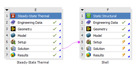 - Drag and drop the thermal solution into a Static Structural system to create the data link.